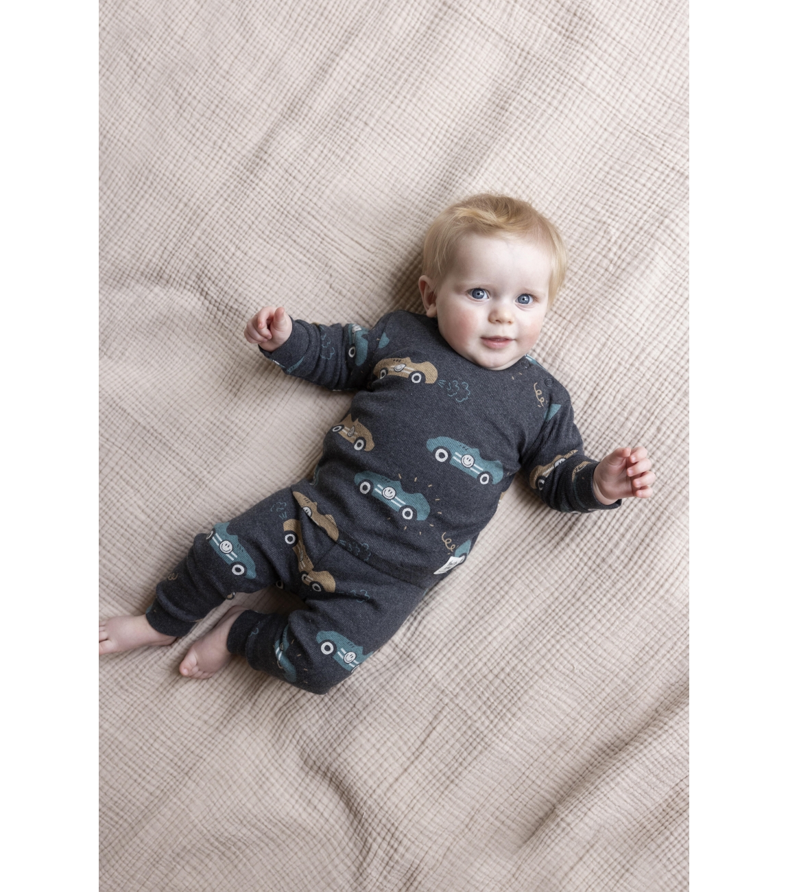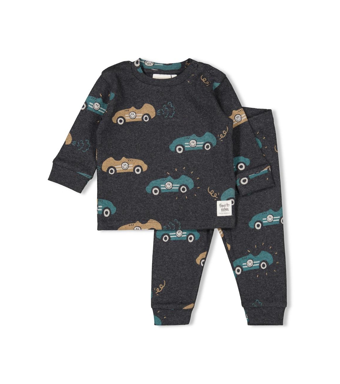Voor kleine snelheidsduivels is deze winter pyjama met raceauto's een echte topper. De donkergrijze basis en vrolijke print maken deze winter pyjama met lange mouw stoer en speels tegelijk. Gemaakt van 83% katoen, 15% polyester en 2% elastaan, zodat hij zacht en comfortabel aanvoelt. De perfecte keuze voor jongens die vol energie hun dag beginnen of eindigen. Ook is dit een geweldig cadeautje voor Sinterklaas of voor onder de kerstboom.