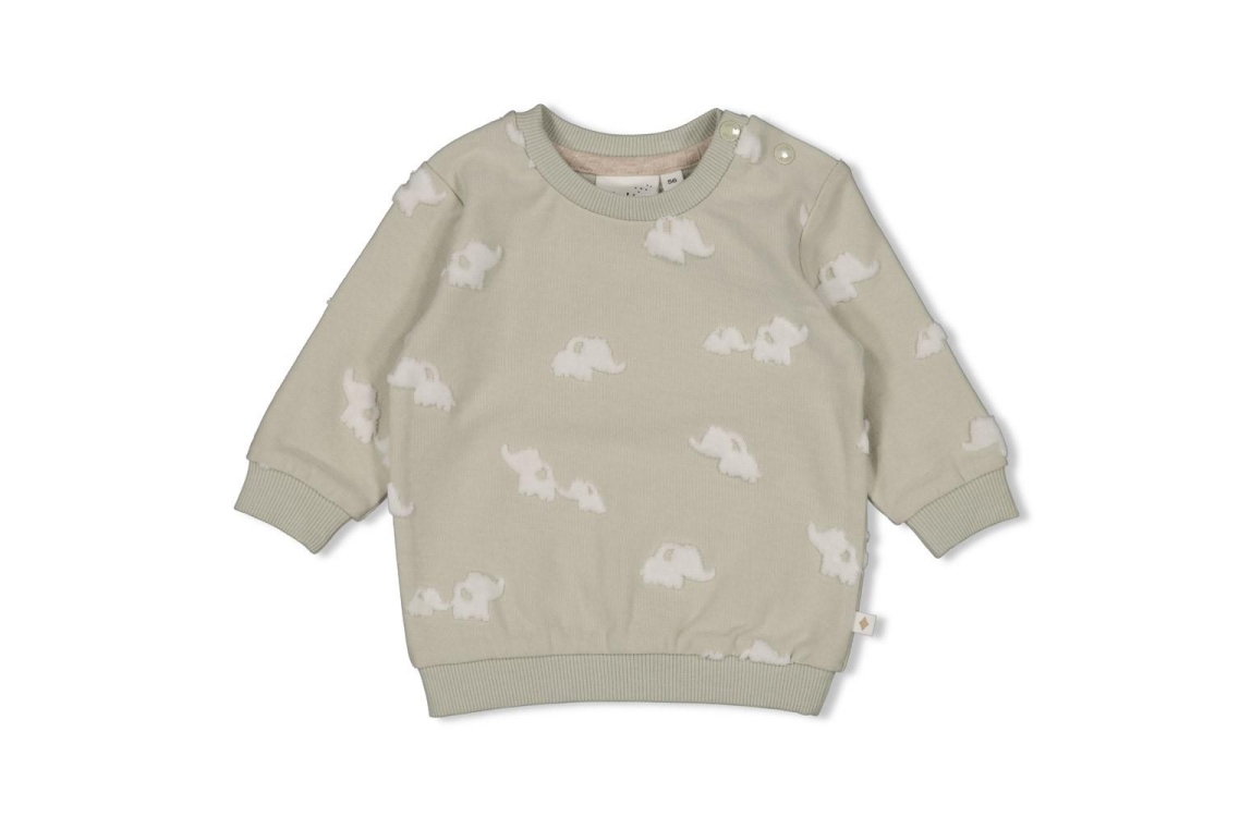 Comfy sweater uit het Elephant-thema met een lieve olifantjesprint. Ribboorden houden het warm en met drukknoopjes op de schouder is aankleden zo gepiept. Perfect voor knuffeldagen thuis of een rondje in de kinderwagen.