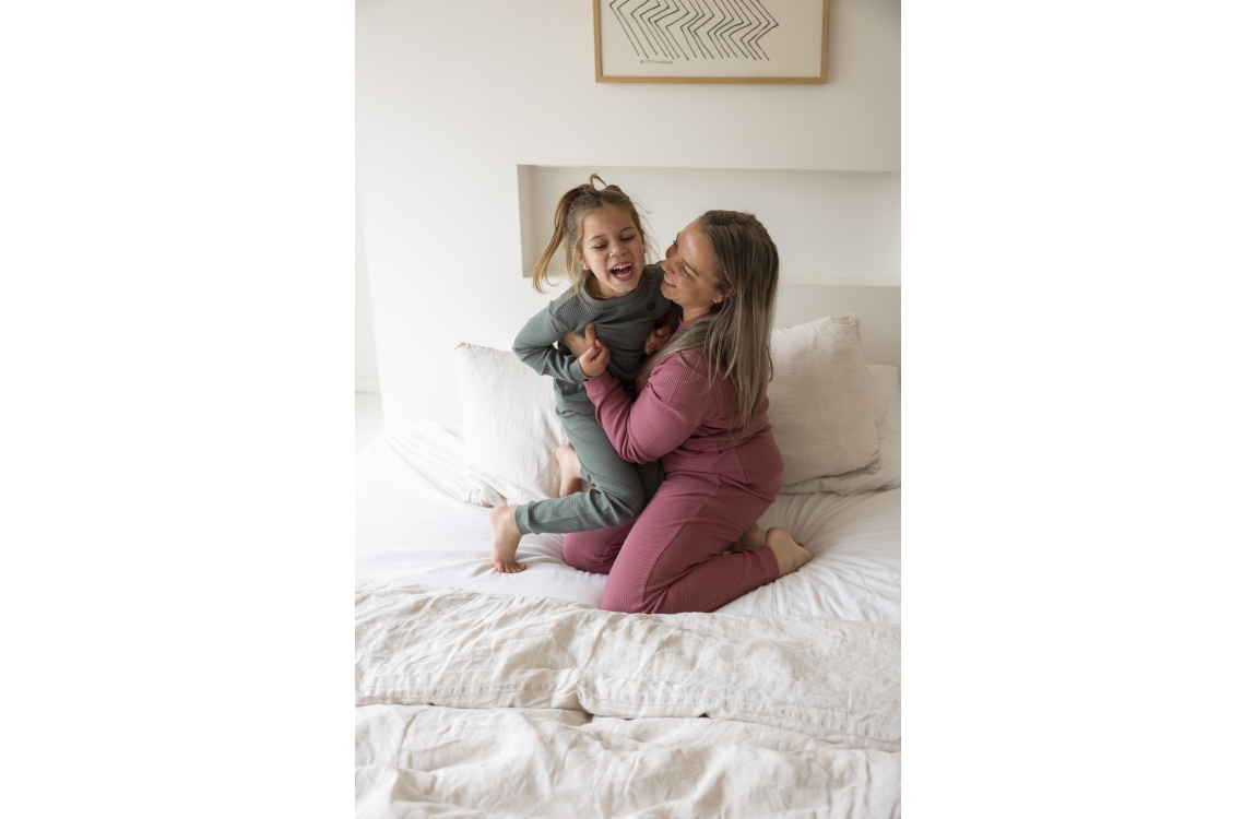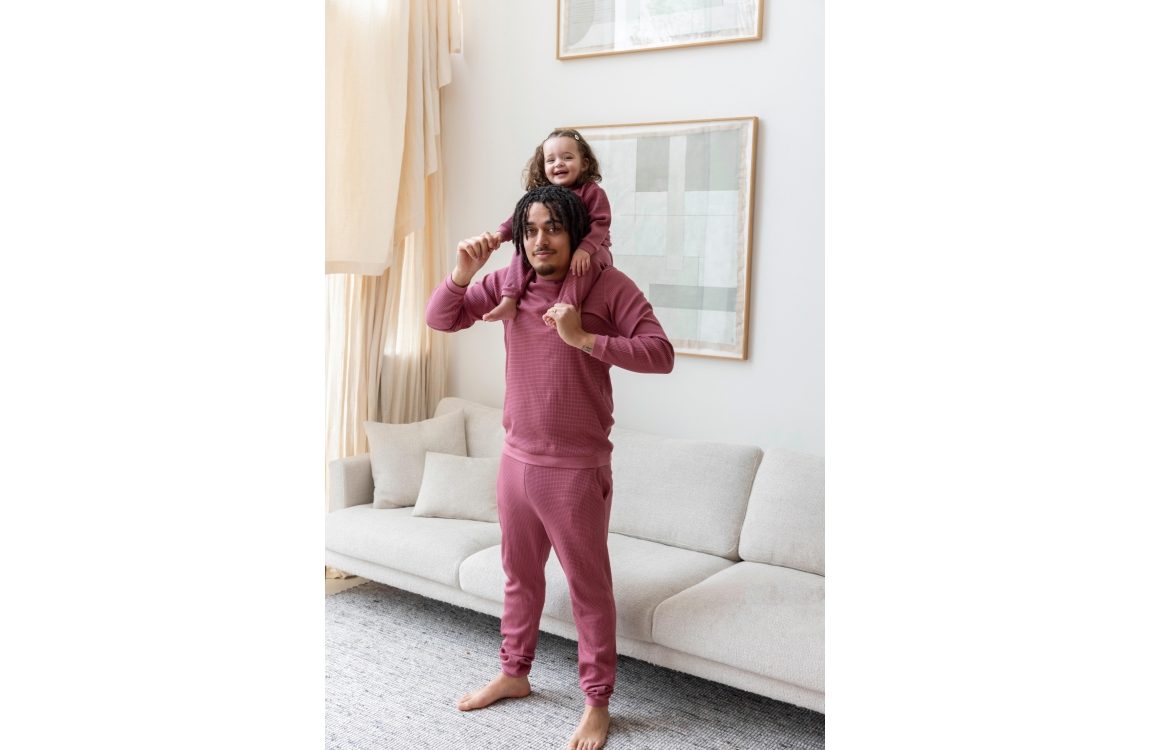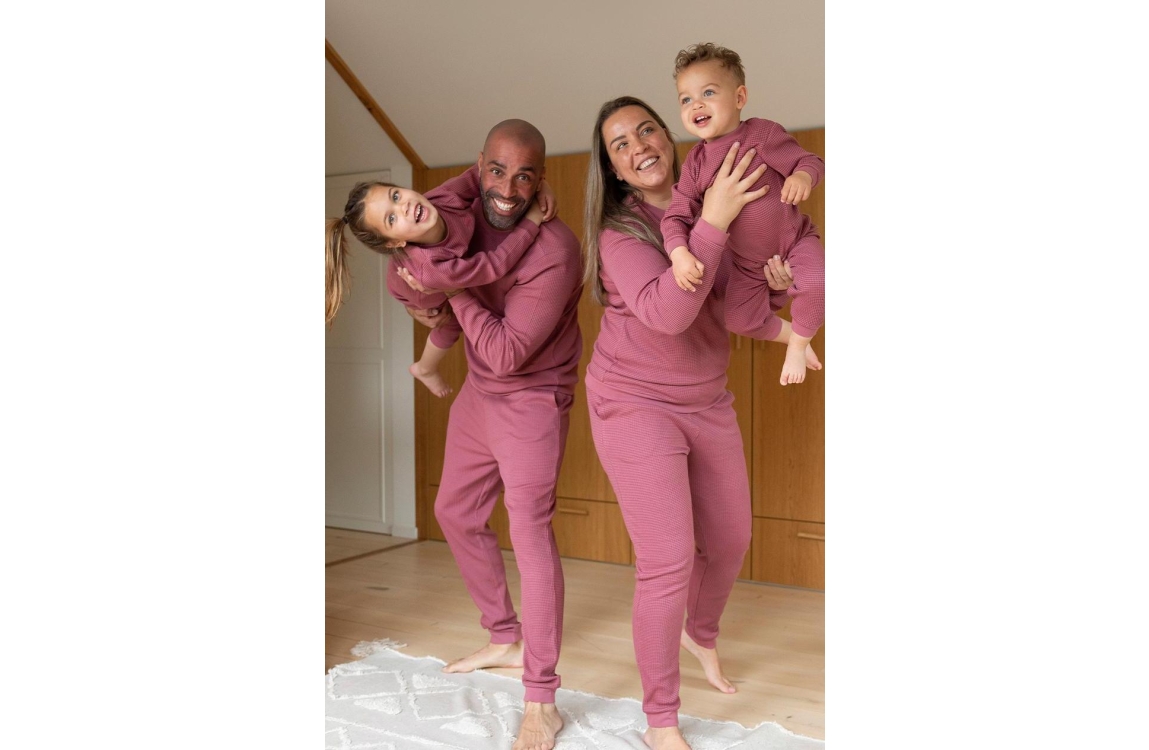 Hoe leuk is het om te matchen met de kids? Deze wafelpyjama in Berry maakt van elke avond een feestje. Het materiaal van 80% katoen en 20% polyester voelt zacht en luchtig, ideaal om in te relaxen of een spelletjesavond in door te brengen. Deze leuke pyjama is ook te verkrijgen in de kleur zeegroen! Hoe leuk om te cominberen met deze mooie berry pyjama?! De pyjama valt getailleerd en er zijn steekzakken in de broek verwerkt, hoe handig! Dankzij het tijdloze wafelpatroon straalt de pyjama net dat beetje extra gezelligheid uit. Een echte must-have om samen de dag in stijl af te sluiten.
