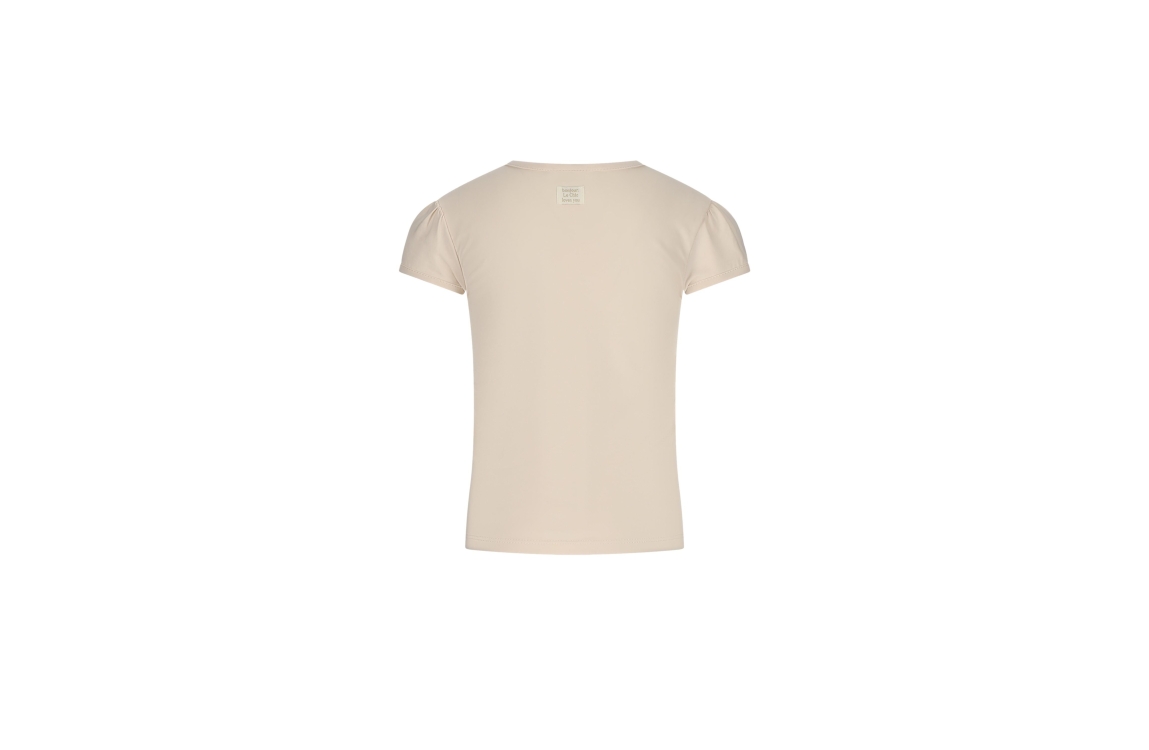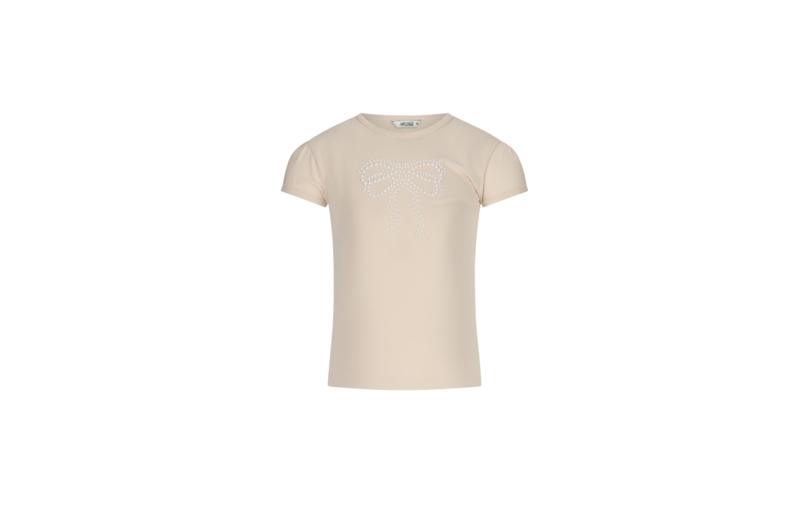 Een T-shirt dat meteen een vleugje elegantie toevoegt aan elke outfit. De zachte 95% OCS-katoen en 5% elastaan maken dit shirt heerlijk comfortabel en licht rekbaar, ideaal voor speelse dagen en nette momenten. De subtiele Pearly Bow zorgt voor een klassieke Le Chic-touch, terwijl de kleur Sands of Time perfect matcht met rokken, shorts of een denim jasje. Een fijn basisitem dat zowel girly als tijdloos aanvoelt, en waarmee elk meisje straalt, van schooldag tot feestje.