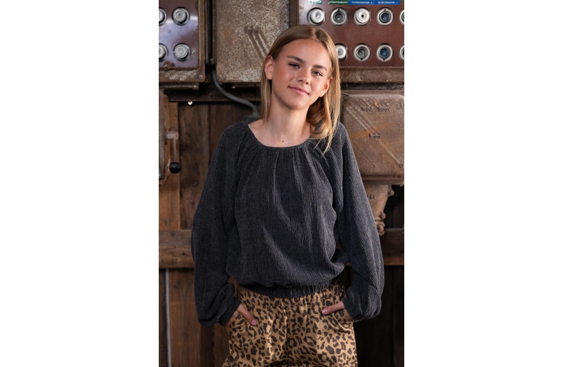 Met deze smock top in Washed Grey voeg je een speels detail toe aan de outfit. De mix van 80% polyester, 18% rayon en 2% elastaan zorgt voor een luchtige en rekbare kwaliteit. De smock-structuur geeft een trendy uitstraling, terwijl de gewassen grijstint makkelijk combineert met denim of prints. Ideaal voor zowel schooldagen als feestjes. Een top die comfort en mode in perfecte balans brengt.