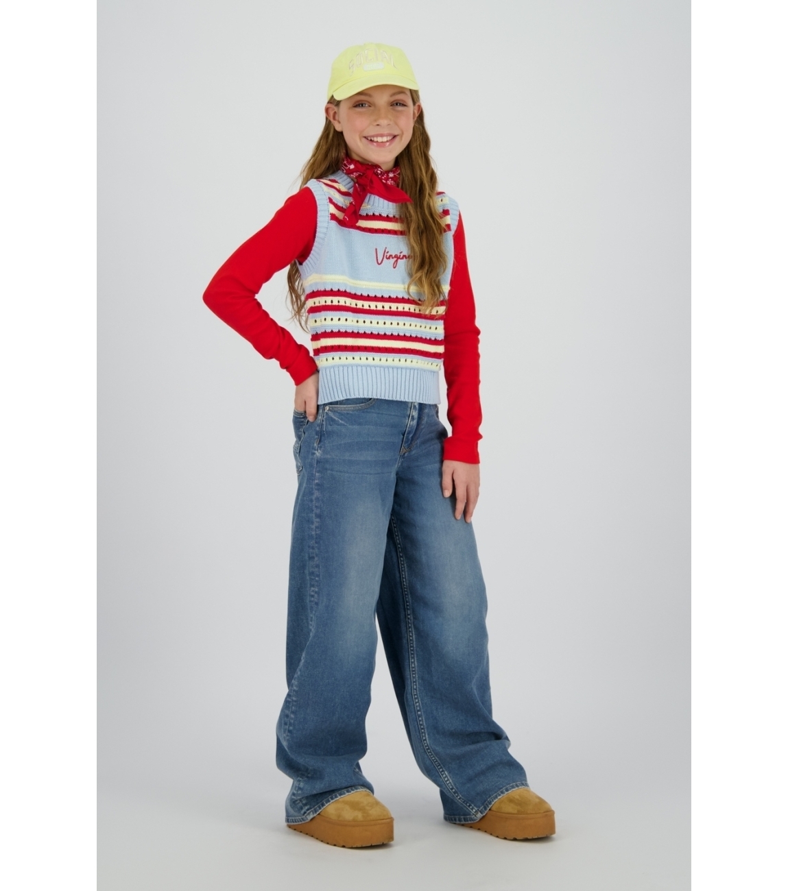 Koel en kalm met een vleugje winterse frisheid. Deze trui van 100% acryl voelt zacht aan en houdt prettig warm, terwijl de lichtblauwe kleur mooi combineert met denim, zilveren accenten of zachte pastels. De rechte snit maakt hem perfect voor laagjes, bijvoorbeeld over een fijn T shirt of onder een gewatteerd vest. Ideaal voor school, shoppen of een relaxte dag thuis. De gebreide structuur geeft net genoeg textuur om een eenvoudige outfit direct interessanter te maken.
