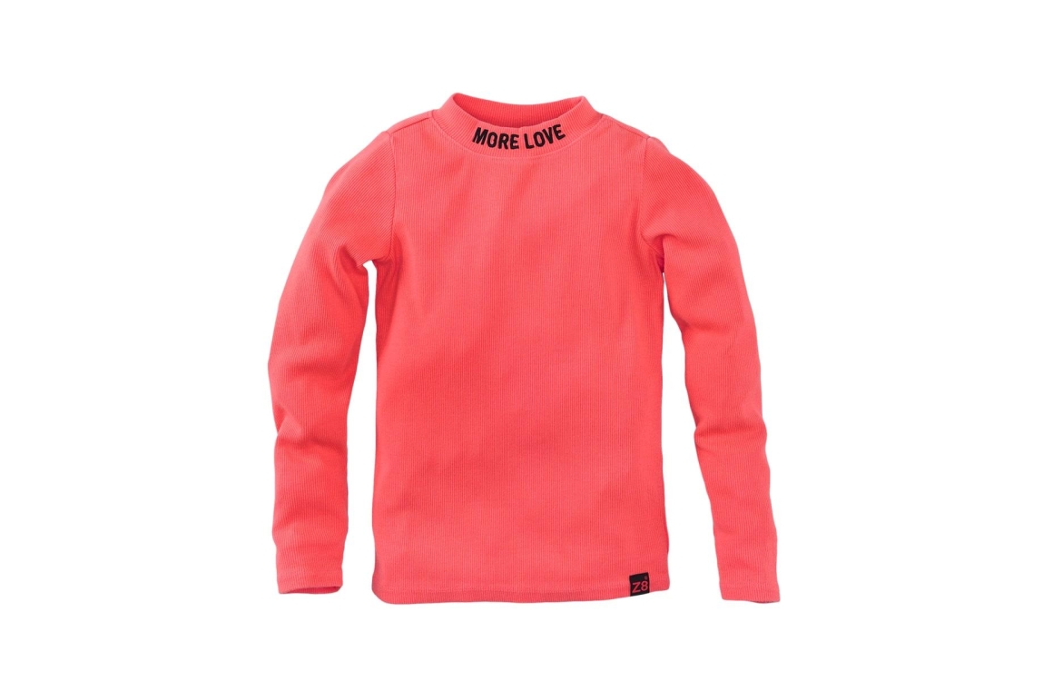 Laat je kleine stralen in deze opvallende Z8 Isalie longsleeve! Deze zachte ribstof top in een frisse koraalrode kleur combineert comfort met een trendy uitstraling. De subtiele opdruk “MORE LOVE” op de kraag geeft een stoere, maar liefdevolle touch aan elke outfit.